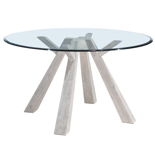 The brand new modern and sleek Zuo Beaumont Glass Round Dining Table in Sun Drenched Acacia is a one of a kind dining room table that is really going to add some character to your home.
