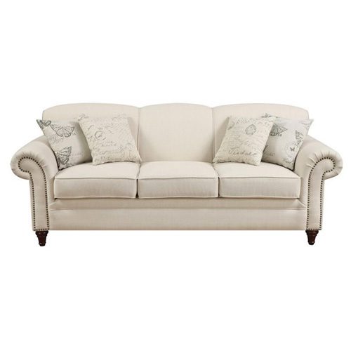 Oatmeal? No, not the breakfast! The color of the couch! The Coaster Norah Antique Inspired Sofa with Nail Head Trim in Oatmeal is beautiful. I really love how long this sofa is providing you with room for three and possibly four if you have little ones at home. The creamy oatmeal color is unique and very nice to look at. It’s basically an off white color that blends into your home nicely. The couch offers a premium comfort level and a high quality durability that is unmatched at this price range.